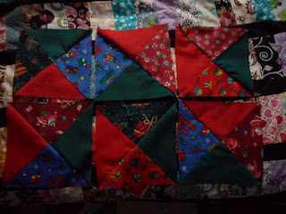I had to swap some pieces around and add on some extra pieces to make them long enough after they had been sewn together. I just have to cut the final shape then work on the backing. That might just be one solid colour in a nice dark shade. Then I'll double up the batting and hand quilt it. I need to make up some binding..... The finished size should be 14" tip to bottom x 22" along the base. This may be an early finish! The deadline is mid November! So I can make some fun goodies to go with it too.